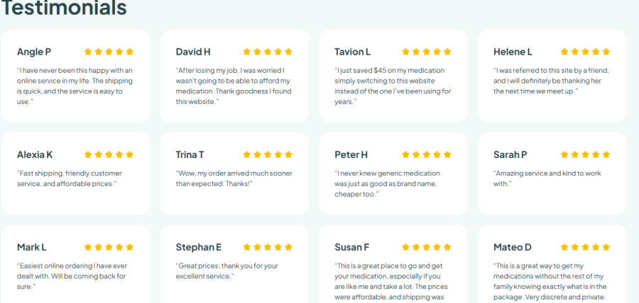 Citaedtre.com features a long list of glowing testimonials on its homepage, all praising the site’s fast delivery, great service, and cheap medication. But there’s a problem: these reviews can’t be independently verified.