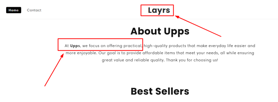 At first glance, that may sound like a generic mission statement—but a quick online search reveals that this exact line also appears on other questionable sites, such as Layrshop.com, which has been flagged for suspicious activity. Copy-pasting website content is often a tactic used by scam websites to appear professional without investing in real branding or customer service.