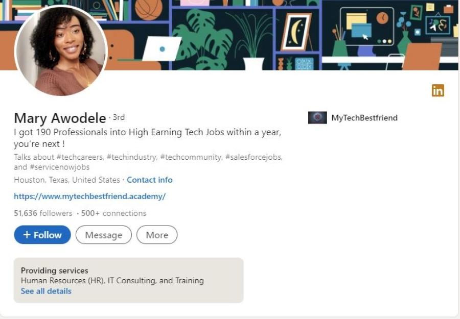 While trying to ascertain whether ‘Mary’ is a real person, I came across the LinkedIn profile of Mary Awodele who proclaims herself to be ‘CEO and creator of Mytechbestfriend’. After going through the profile, I did not find any signs suggesting that Mary may be a fictional creation of scammers. The profile seems legitimate.