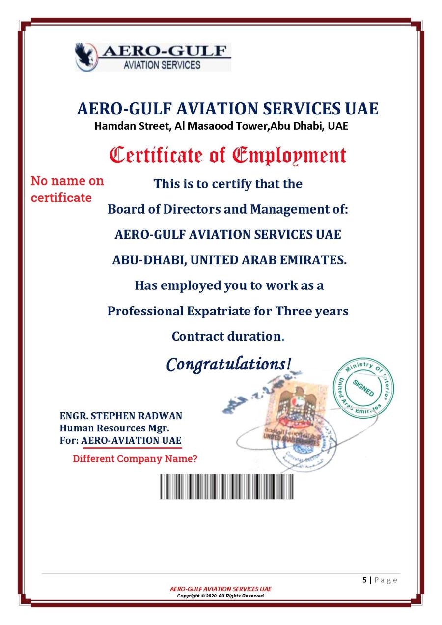 Vous trouverez ci-dessous un exemple réel d'arnaque à l'emploi de Cabin Crew. Nous avons reçu cette demande sur notre page Facebook, nous demandant de vérifier si l'offre d'emploi était authentique. L'emploi était proposé par une société appelée AeroGulf Aviation Services, basée à Abu Dhabi, pour rejoindre le personnel de cabine.