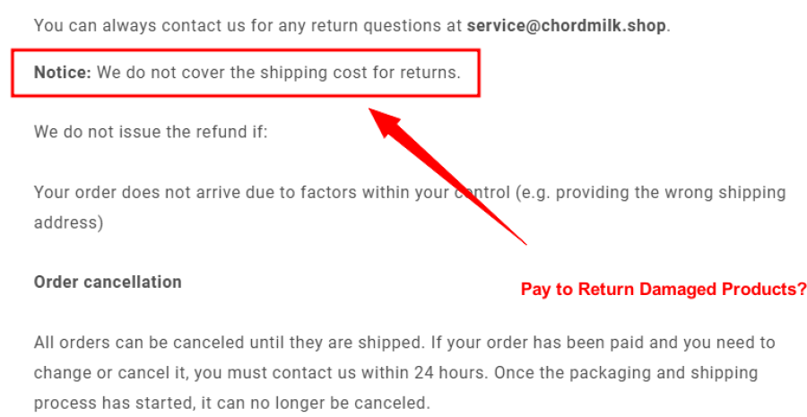 Let’s say you take the risk and order something. What happens if it arrives damaged, the wrong size, or is a completely different item altogether?
